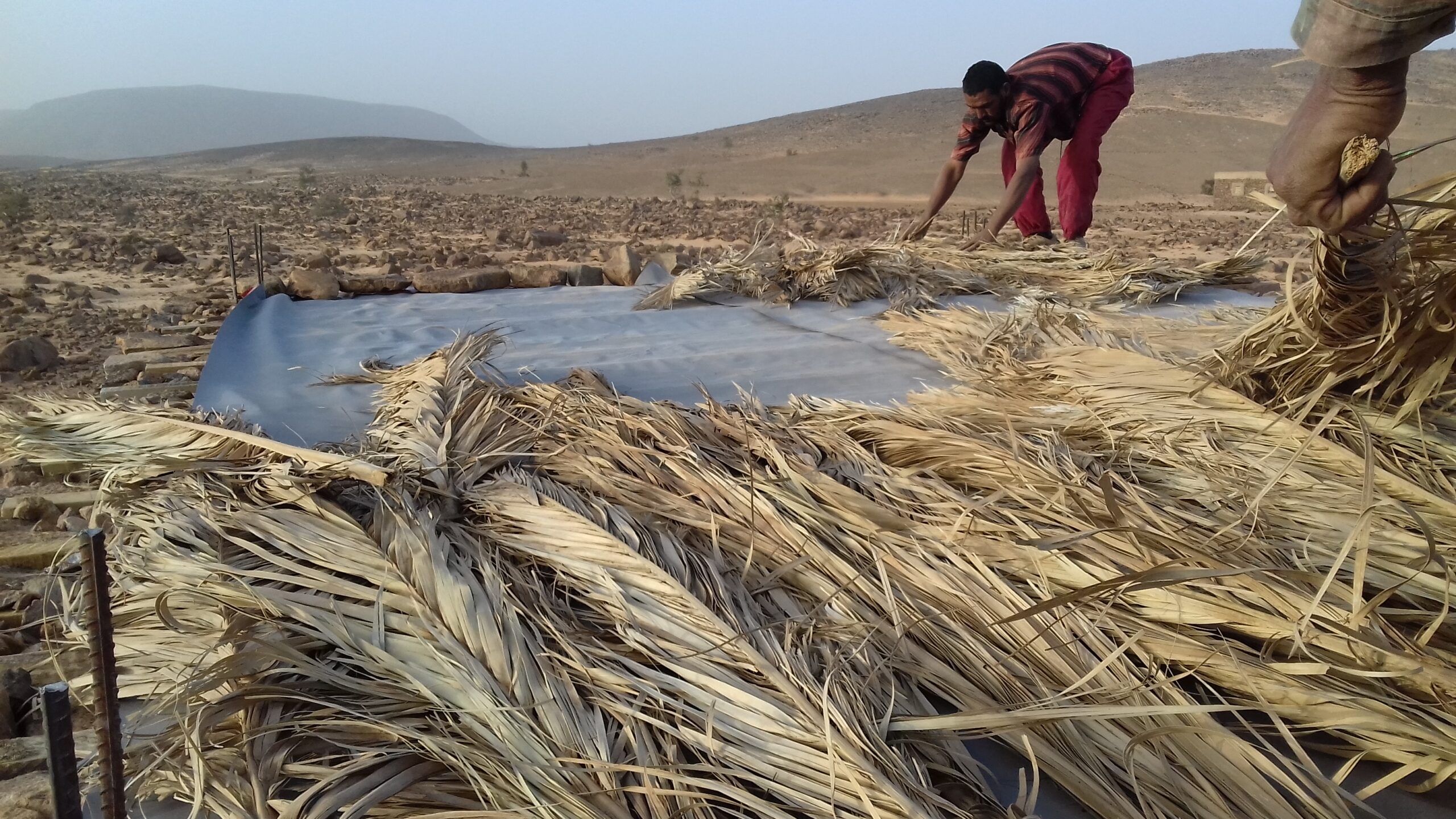 pose des feuilles de palmiers